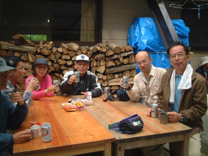 長衛荘テラスにて。天気予報が外れていい山歩きが出来ました乾杯!