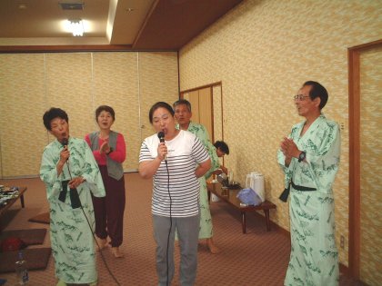 最後の宿の仙流荘で夕食後はカラオケ大会。