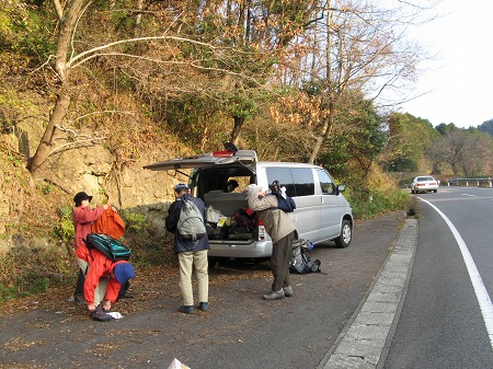 三本松峠に車を置いて田原山(鋸山)に出発/