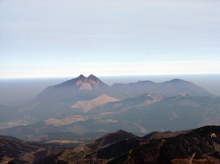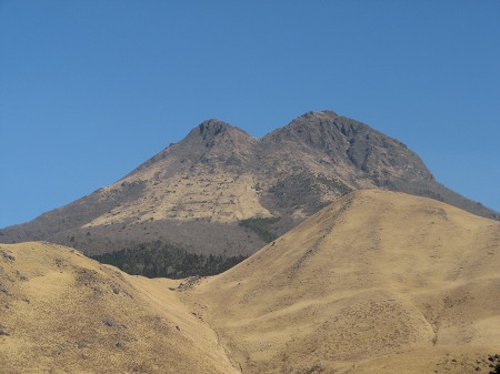 由布岳とその右端は鶴見岳 左に湯布院も見える/