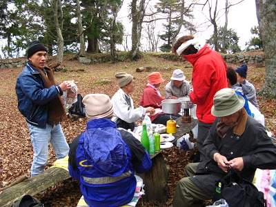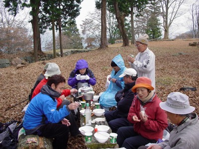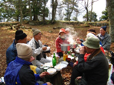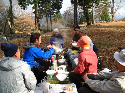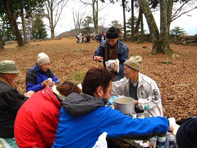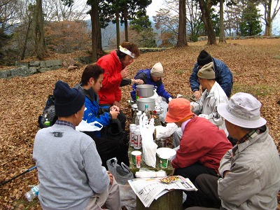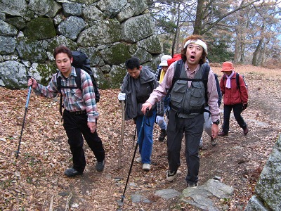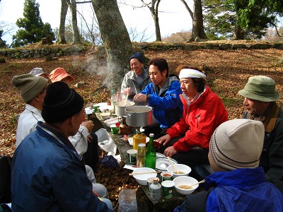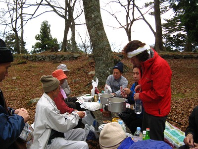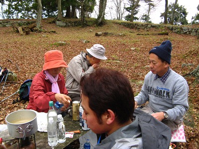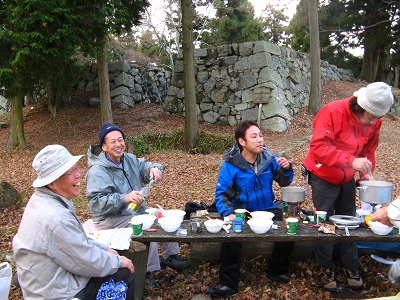 恒例の高取城址での行く秋を惜しむ会。今年もまたMさんの心のこもった「古城」の熱唱が天守閣の石垣に響き、忘年の序奏を皆でかなでてかくも楽しき一日が終わる。