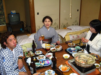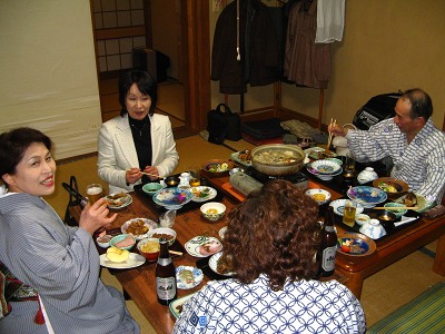 明礬から50分頑張って鉄輪温泉の温泉閣に着いたのは4時15分だった。さっそく温泉に浸かっているうちにMさんが小倉経由でやってきた。楽しみの夕食はいつも通り期待を裏切らず豪華な食事だった。久しぶりにNさんも呼んで山歩会としては少人数ながら楽しい団欒のひと時を過ごせた。