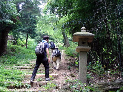 | 今日の山頂は2〜3人のグループ数組に会う | 下りは森林センター前のコース 森林浴で体力回復 | |
