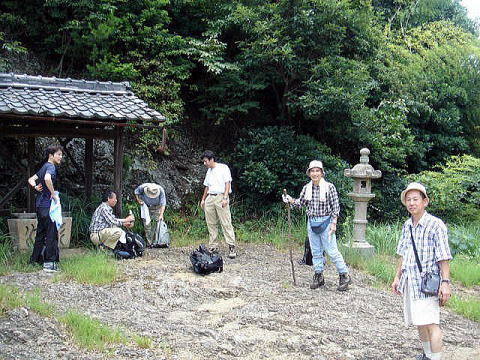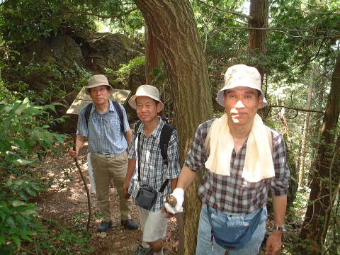 | 妙見堂跡で一休み | ここまでもかなりしんどく汗びっしょり | |