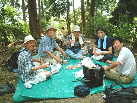 | 展望台の横まで来ると山頂は間近 | 山頂の一角の大広間?で楽しい昼食 | |