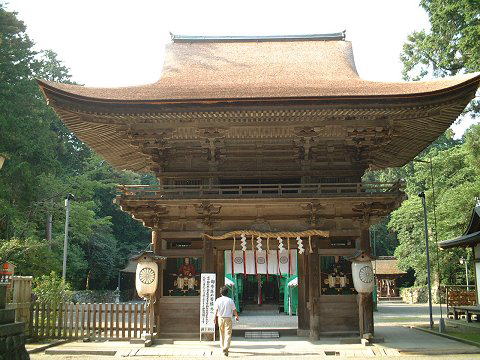 | 三上山を下った所 これから朝の登山口の方へ向かう | 登山口近くの御上神社に参拝(本殿は国宝) | |
